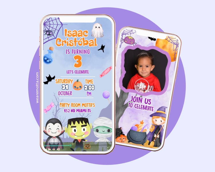 Halloween, Pumpkin, Ghost, Bat, Witch, Spider, Skeleton, Candy, Trick or Treat, Spooky, Boo, Haunted House, Costume Party, Kids Birthday, Digital Invite