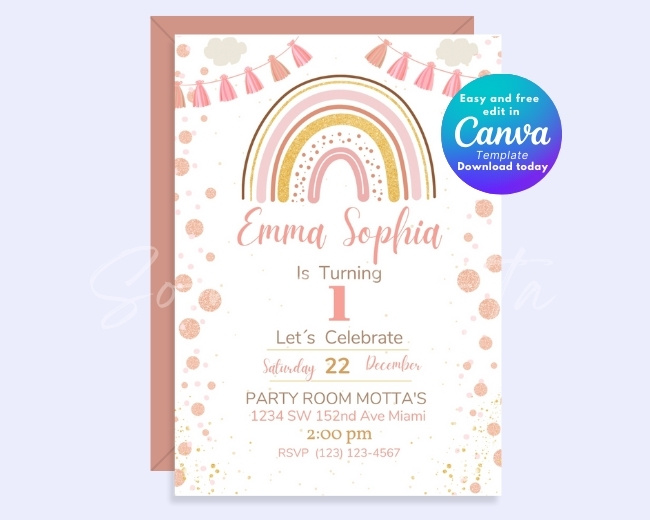 Looking for an Editable Canva Boho Rainbow Invitation? 🌈 Our ready-to-use template is perfect for parents who want a unique and stylish birthday invite for their child under 10. Easily customize it in Canva, download, and share with friends and family. Make your little one’s big day truly magical with this beautiful design.