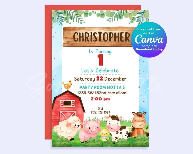Looking for a Farm Animals Editable Canva Invitation? 🐮🎉 Make your child’s birthday extra special with our digital barnyard-themed invitation. Easy to customize in Canva, download instantly, and share with guests. Perfect for kids under 10 who love farm animals! No shipping, no waiting – just fun.