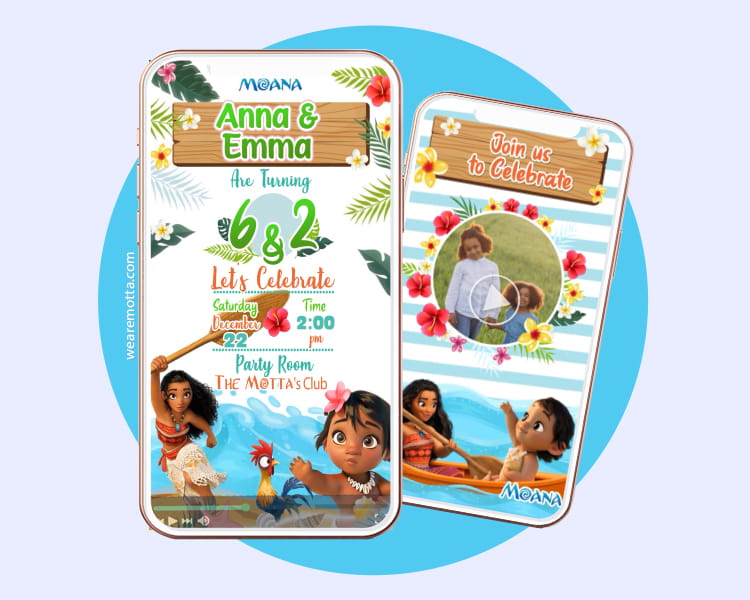moana sisters invitation, baby and teen moana video, double moana birthday invite, shared birthday invitation moana, custom moana video invite, moana siblings invitation, moana adventure video invite, digital invitation for two sisters, moana birthday duo, personalized moana invite, moana party ideas for sisters, moana video greeting, wearemotta moana.