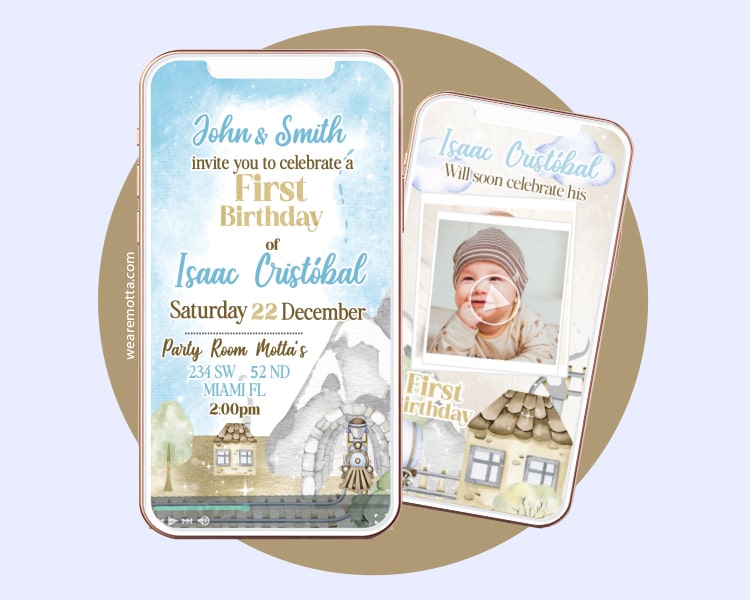 watercolor train first birthday invitation, train first birthday video invitation, personalized baby birthday video invitation, first birthday invitation video, watercolor baby invitation, train theme first birthday, digital baby birthday invitation, first birthday video invite, baby boy first birthday invitation, personalized video invitation baby, train birthday invitation video
